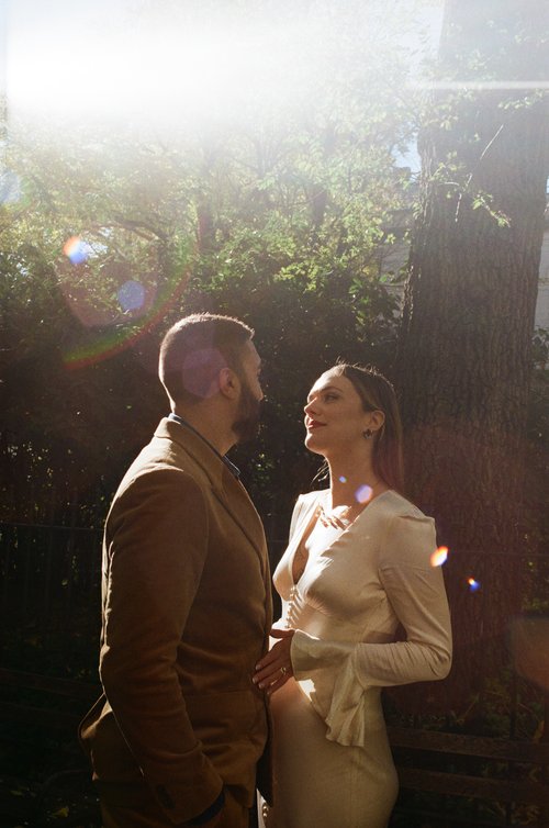 creative ring shot engagement photo in New York central park shot on film by parkers pictures engagement photo on upper east side nyc taken by parkers pictures