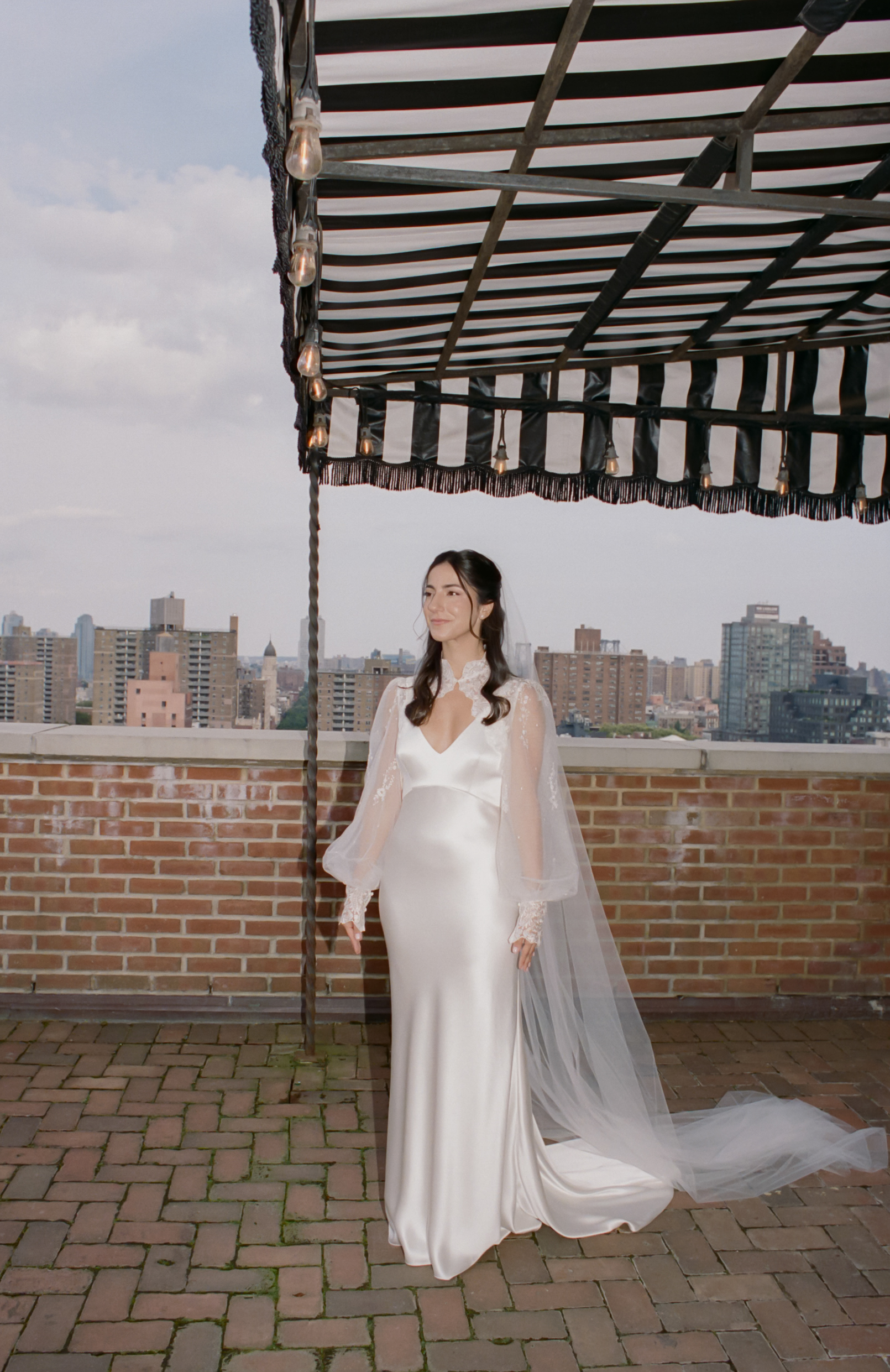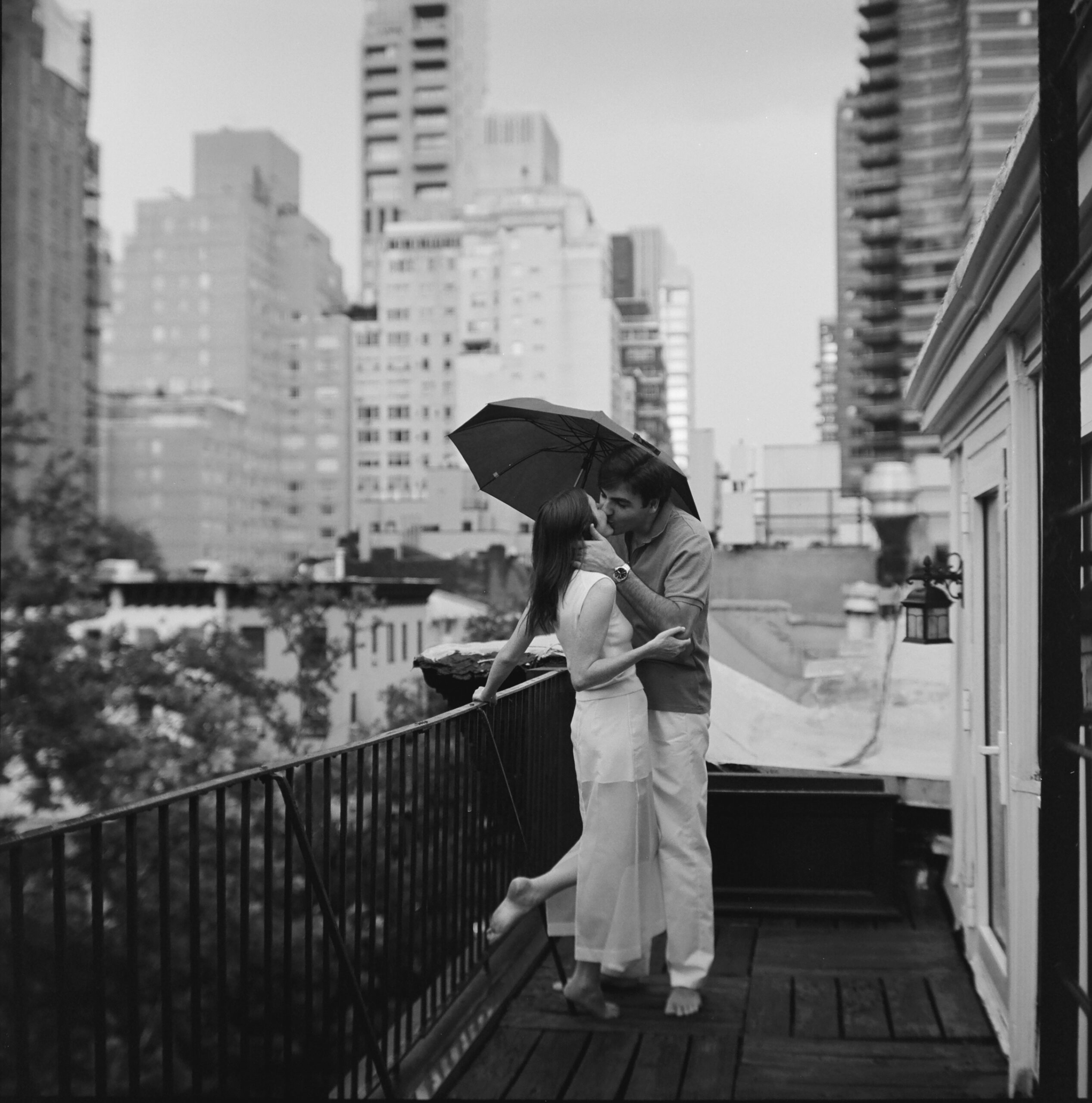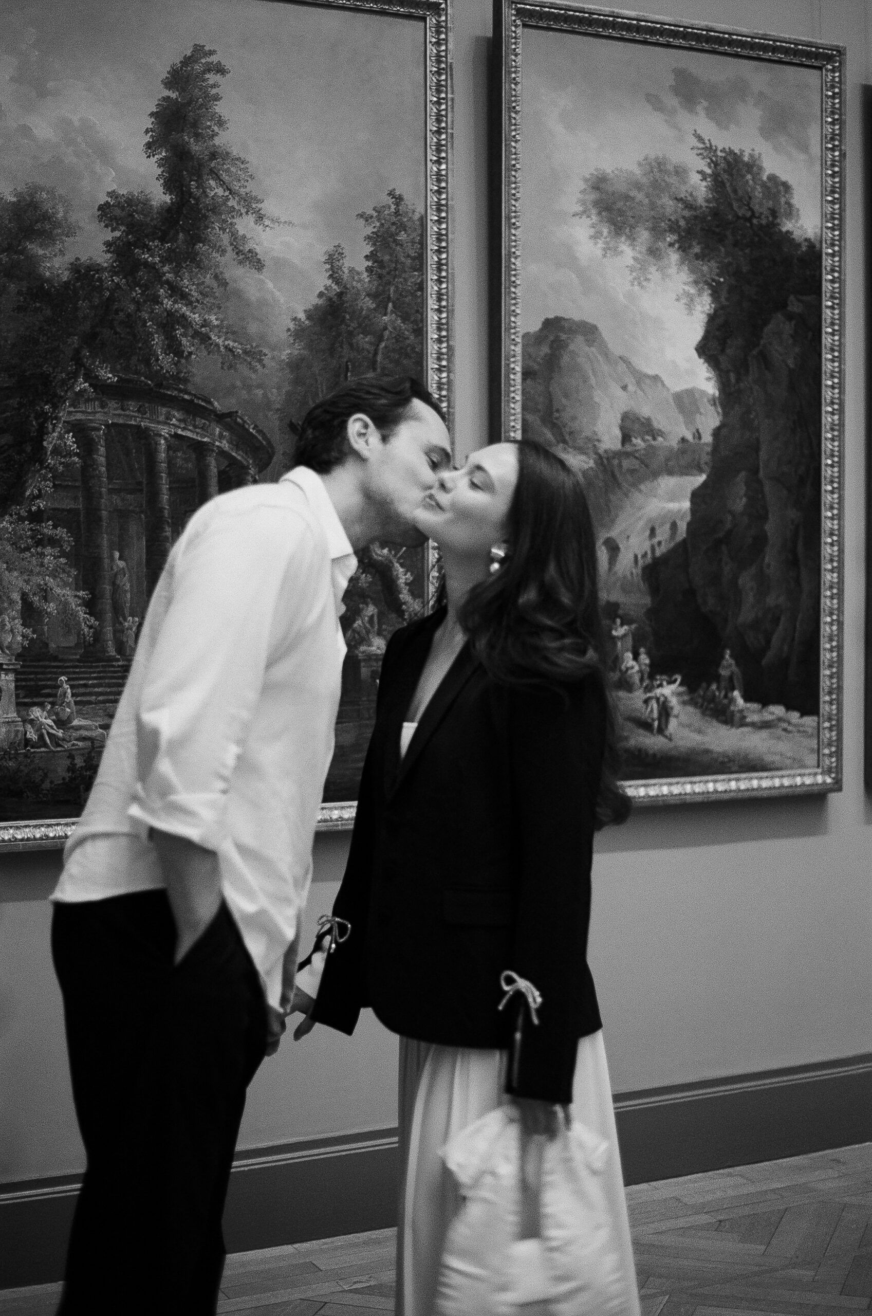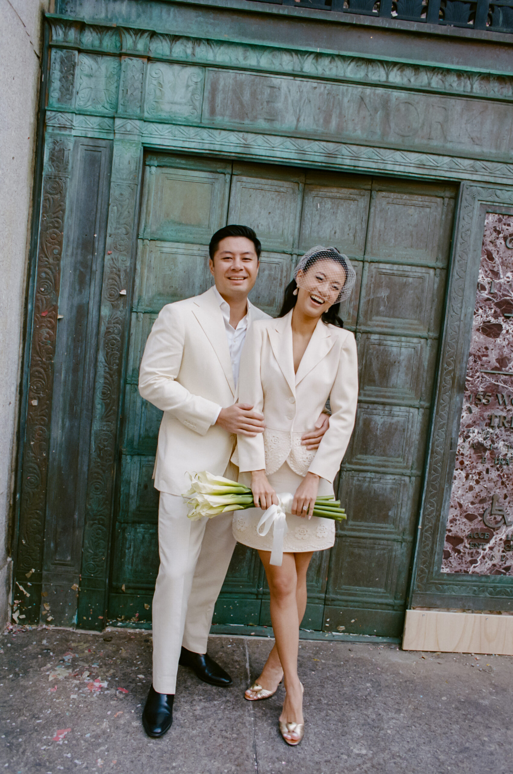 engagement photo on the brooklyn bridge shot on film by parkers pictures Elopement at the Metropolitan Museum of Art taken by Parkers Pictures Nine Orchard Engagement NYC taken by Parkers Pictures Couple laughing at Le Dive NYC taken by Parkers Pictures