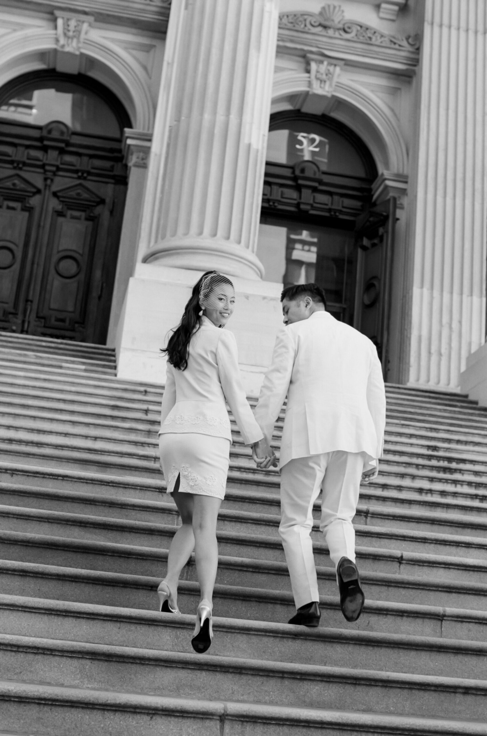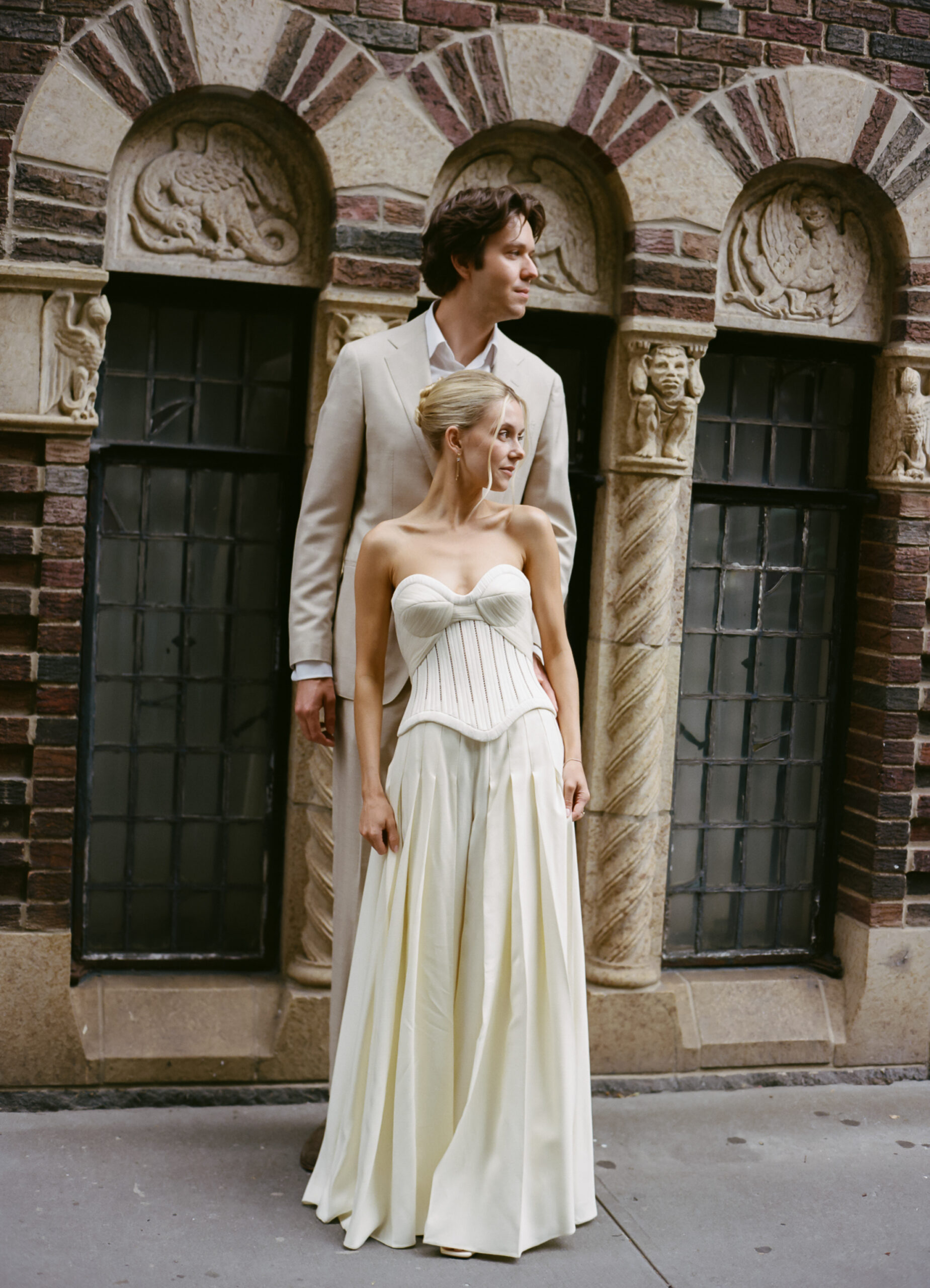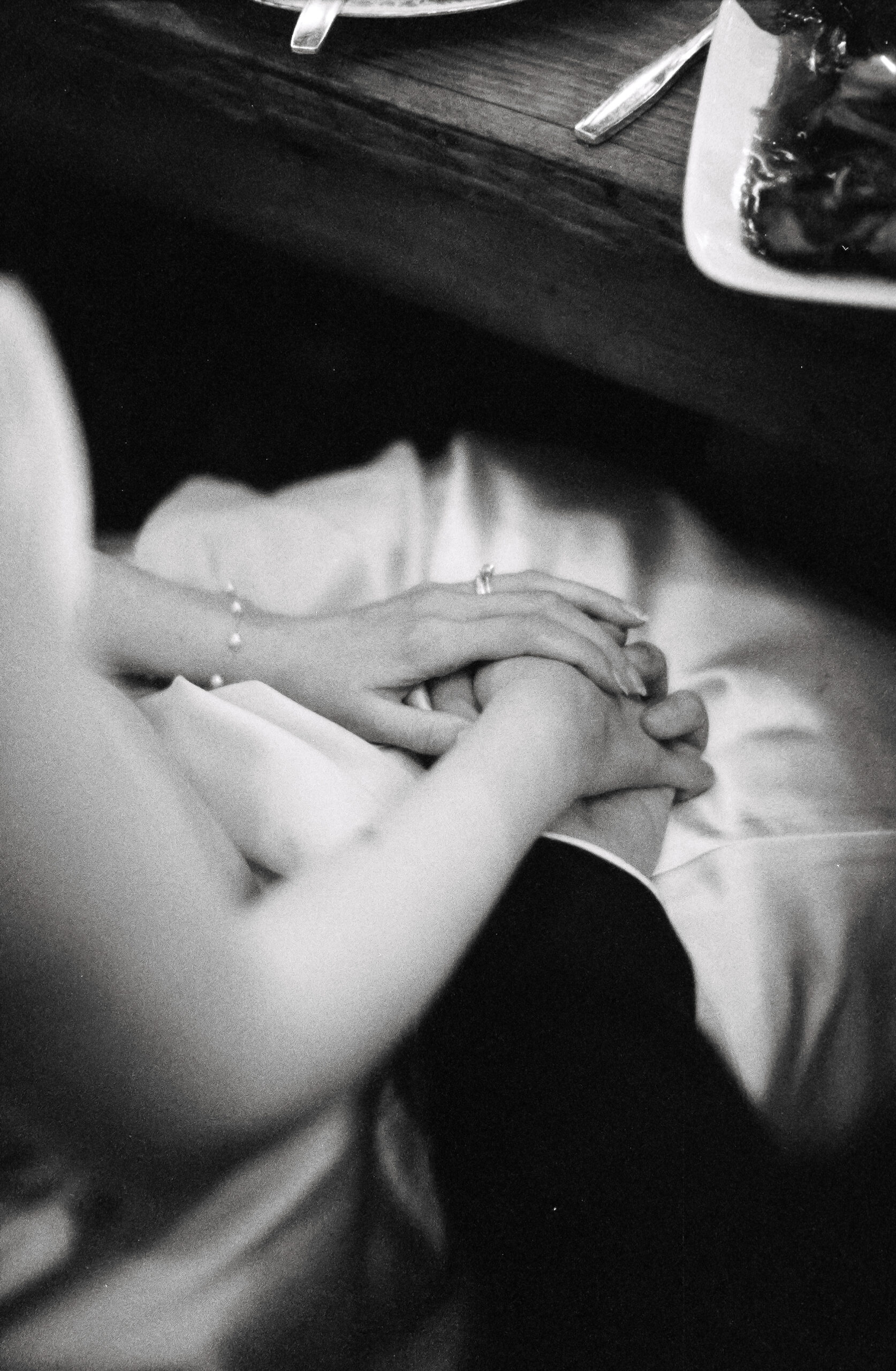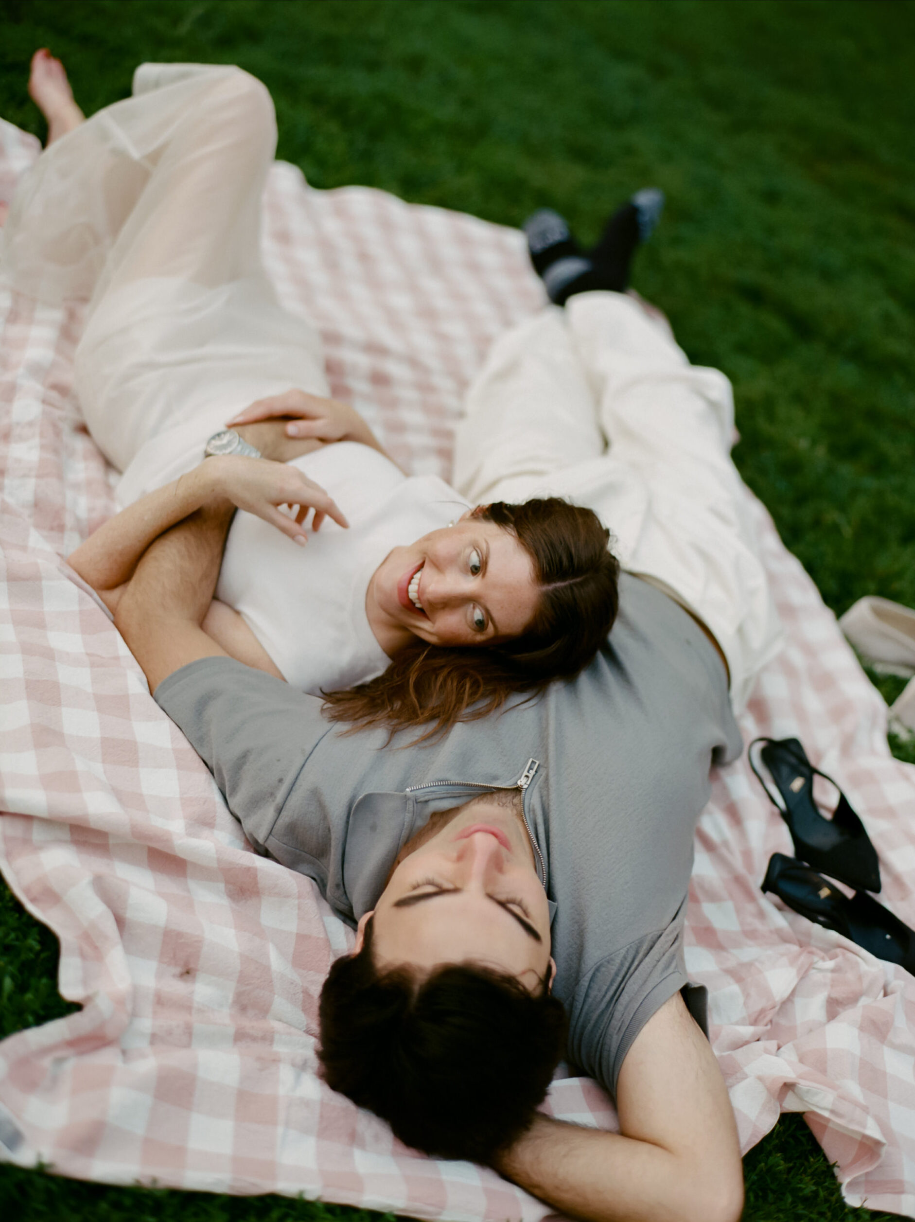 engagement photo on the brooklyn bridge shot on film by parkers pictures Elopement at the Metropolitan Museum of Art taken by Parkers Pictures Nine Orchard Engagement NYC taken by Parkers Pictures Couple laughing at Le Dive NYC taken by Parkers Pictures
