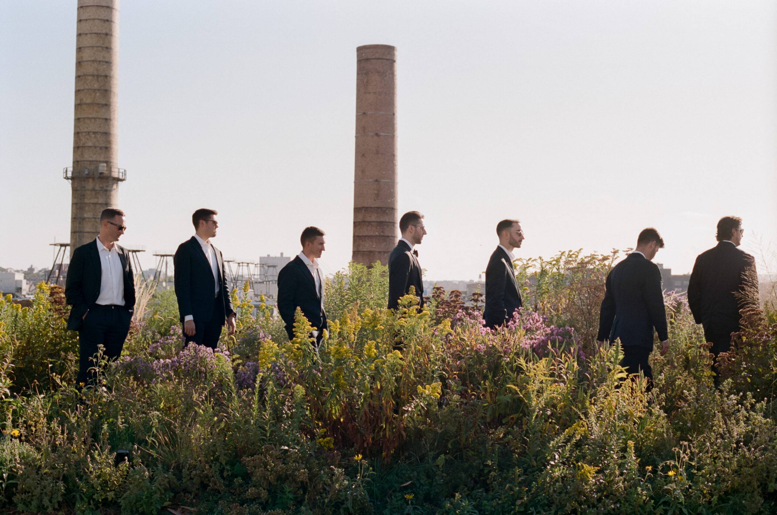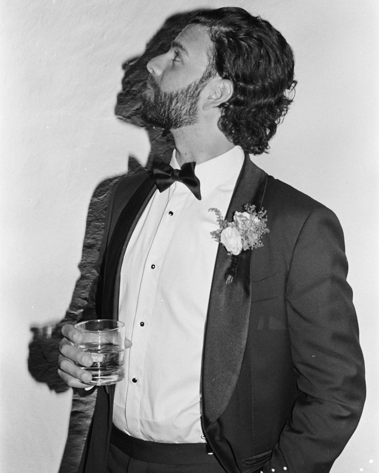 man against flower wall in Lake Garda Italy shot on film by Parkers Pictures couple in the back of a nyc taxi shot on film by parkers pictures