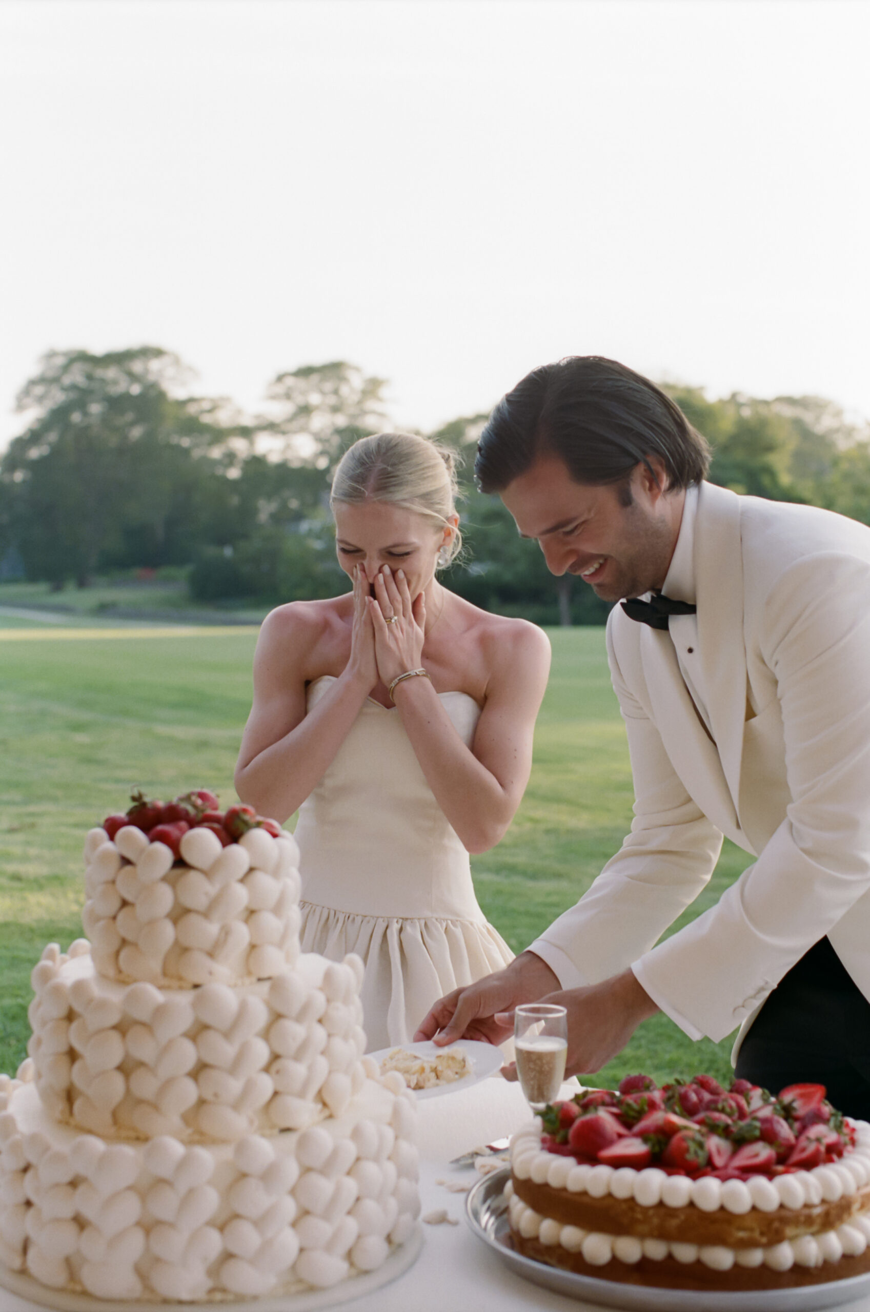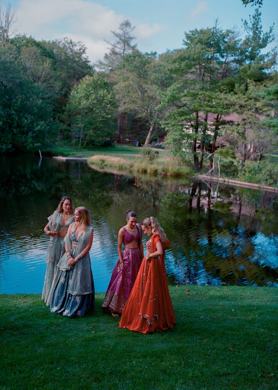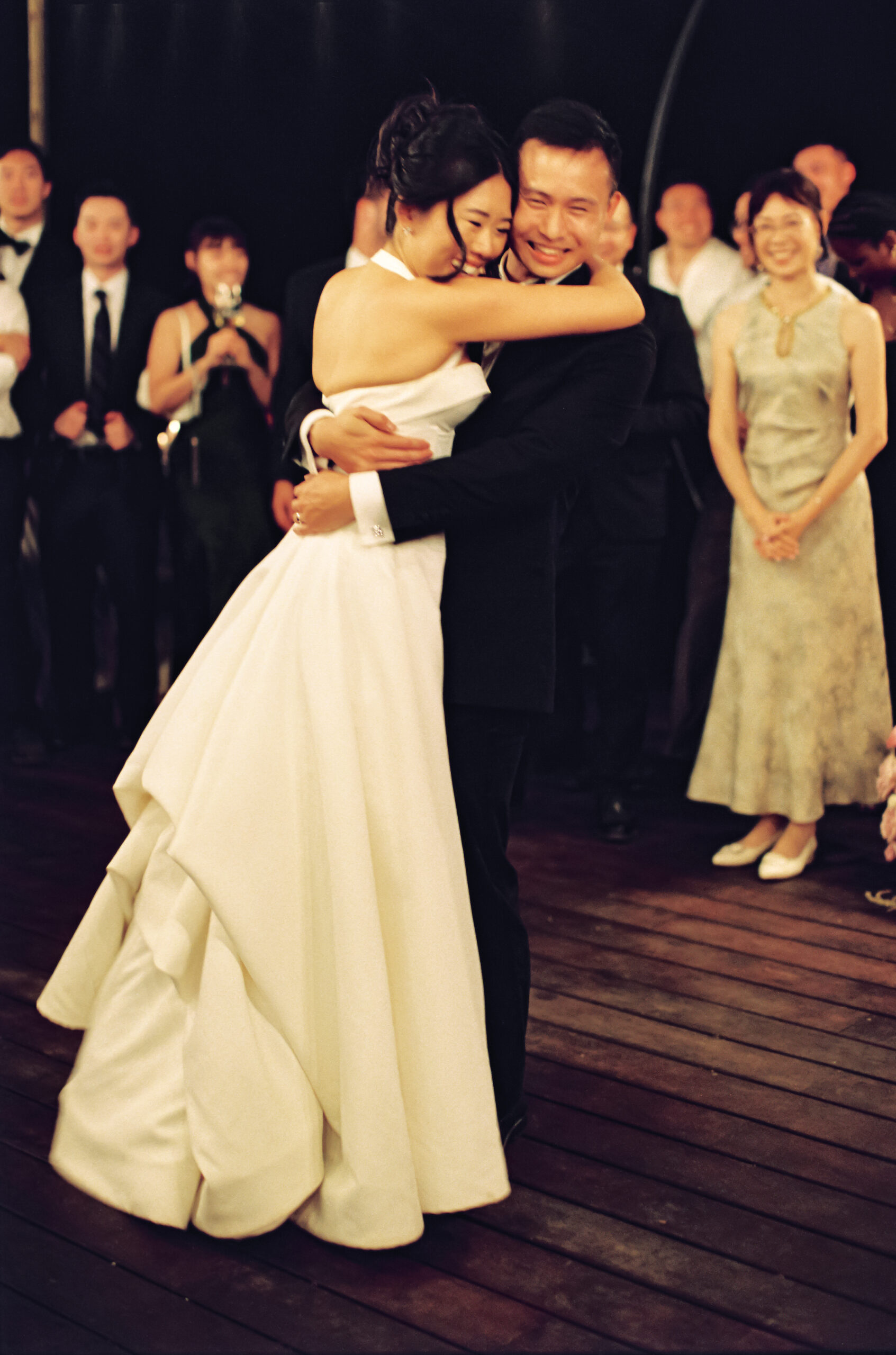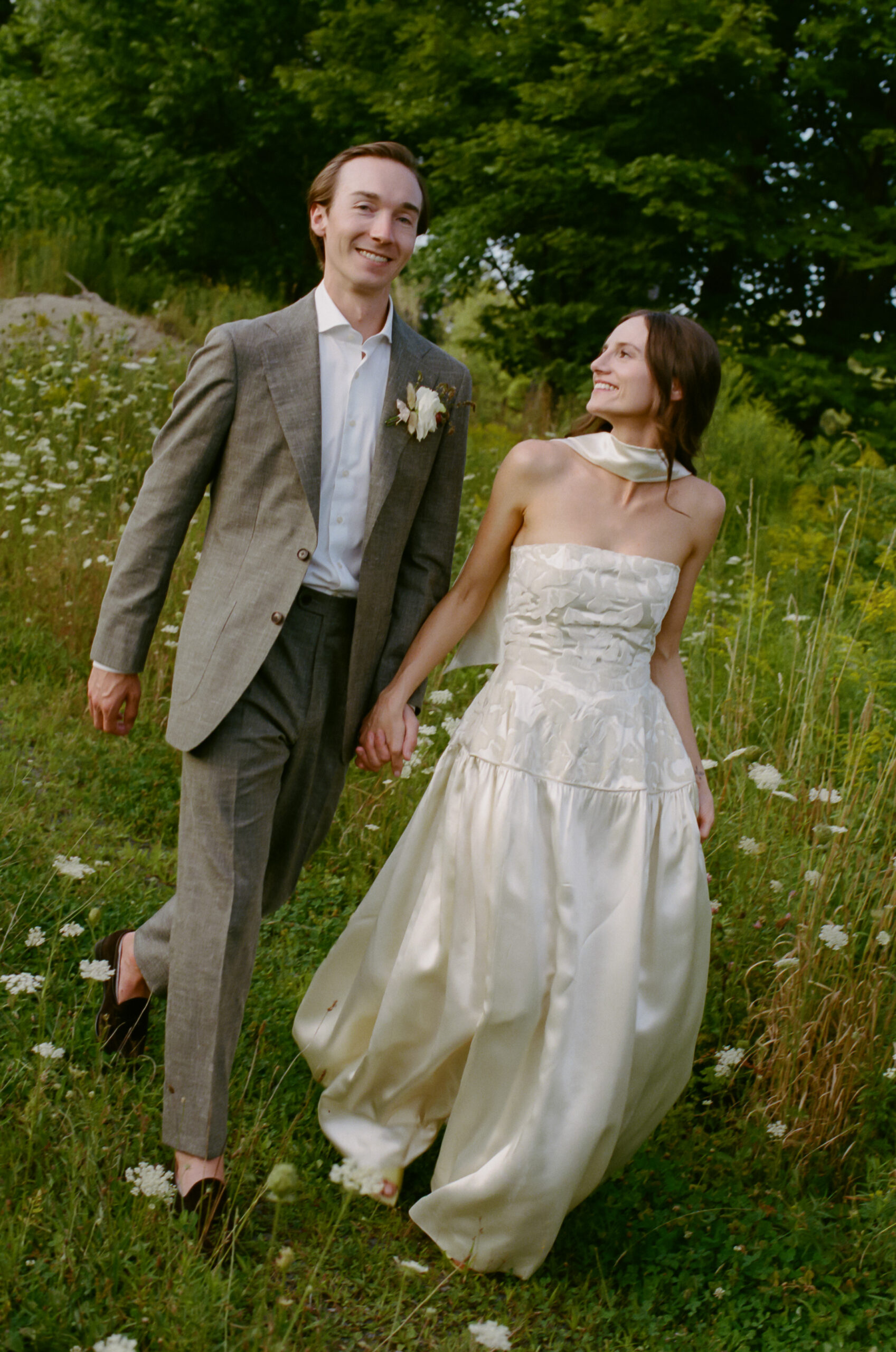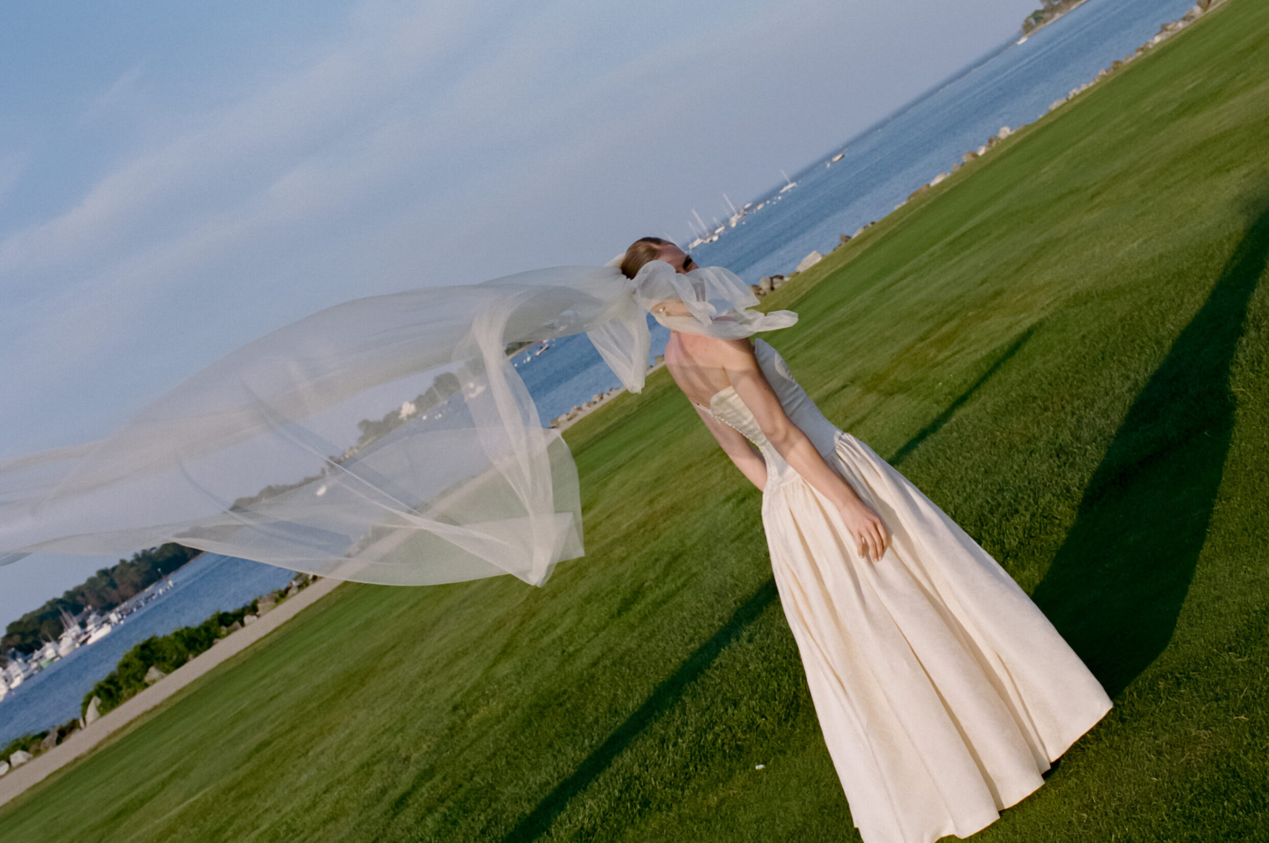 Mount Desert Island Maine wedding portrait shot on film taken by Parkers Pictures Green Emilia Wickstead Dress on the Dance Floor taken by Parkers Pictures