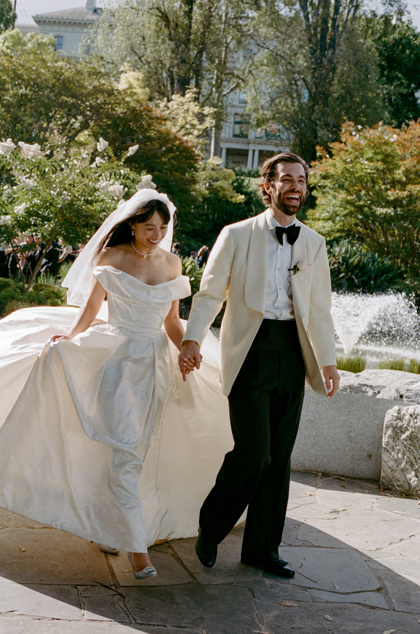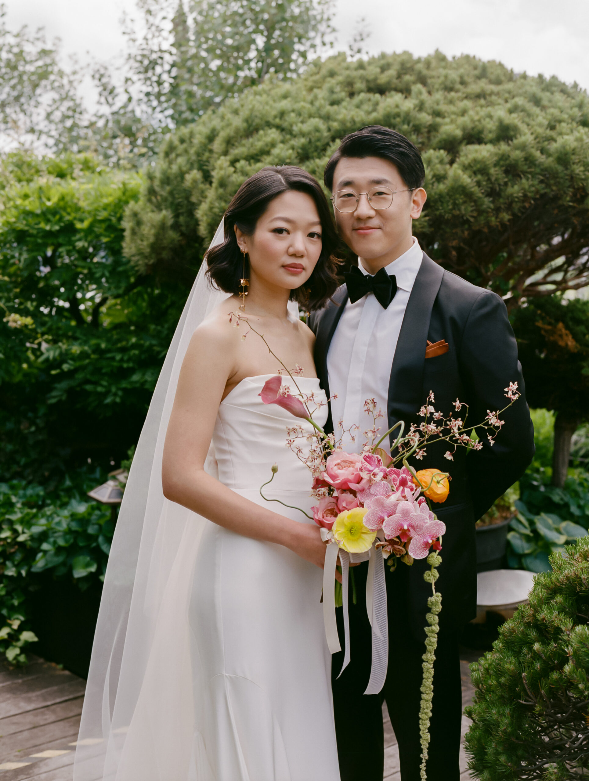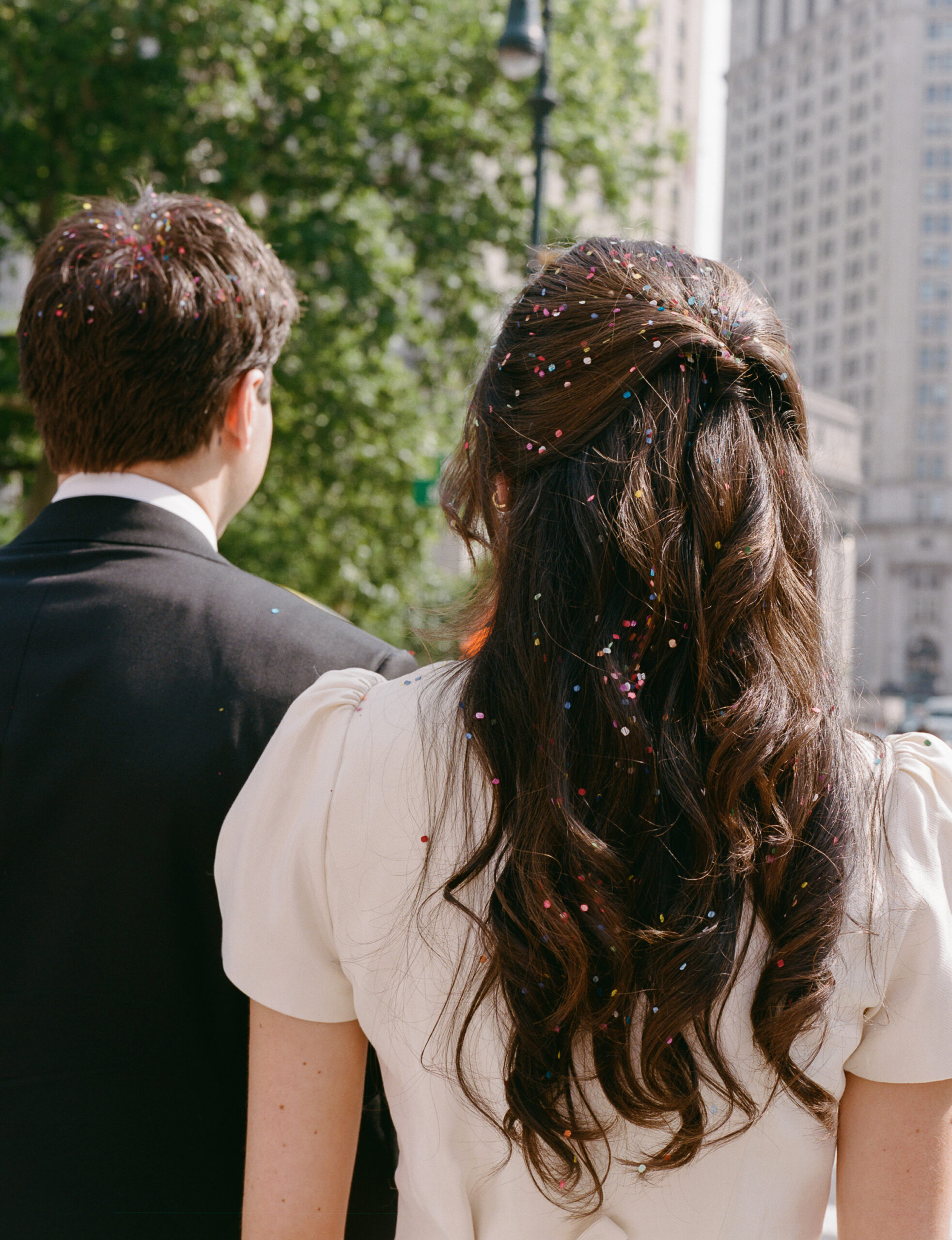 couple in the back of a nyc taxi shot on film by parkers pictures flower girls during ceremony shot on film by parkers pictures