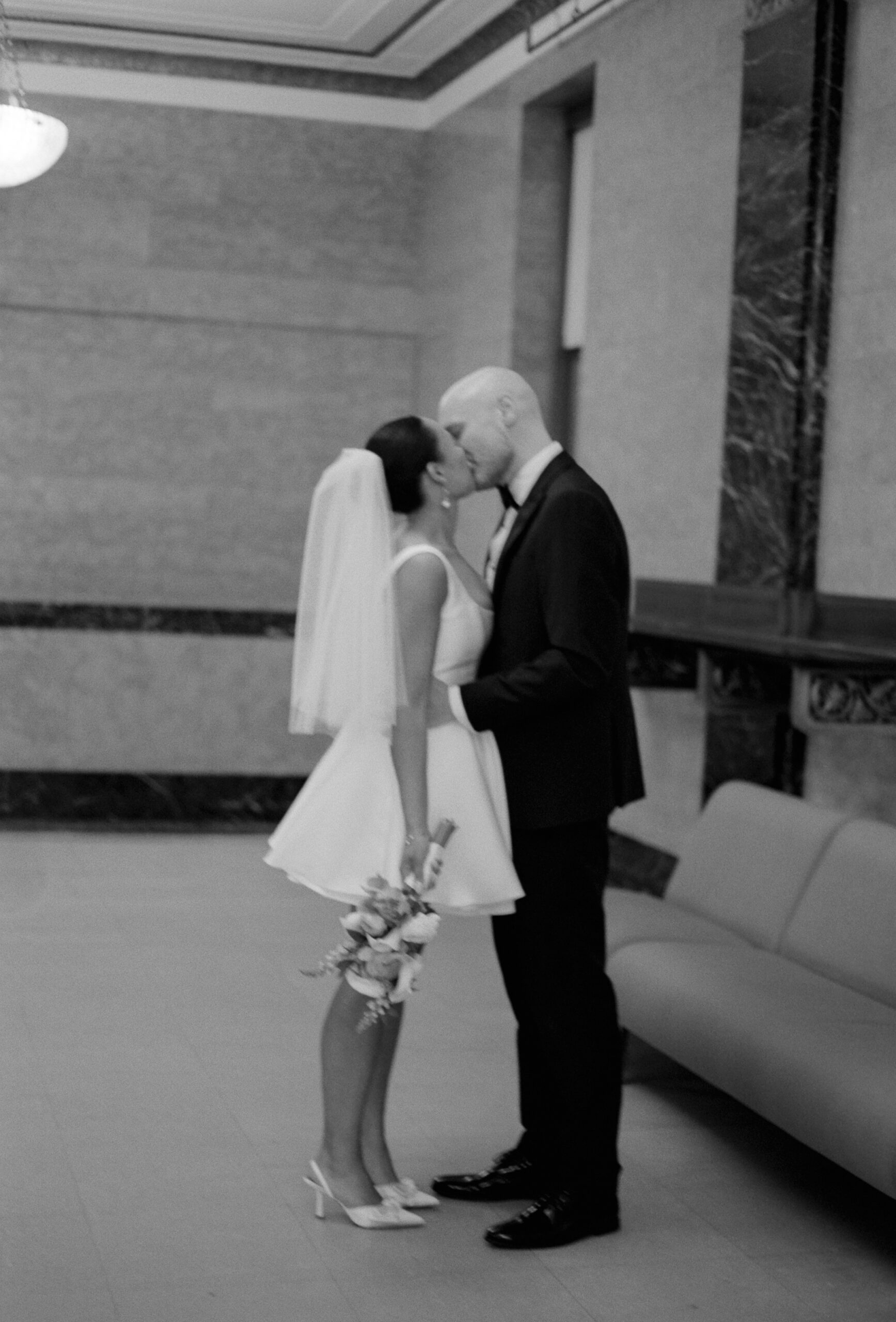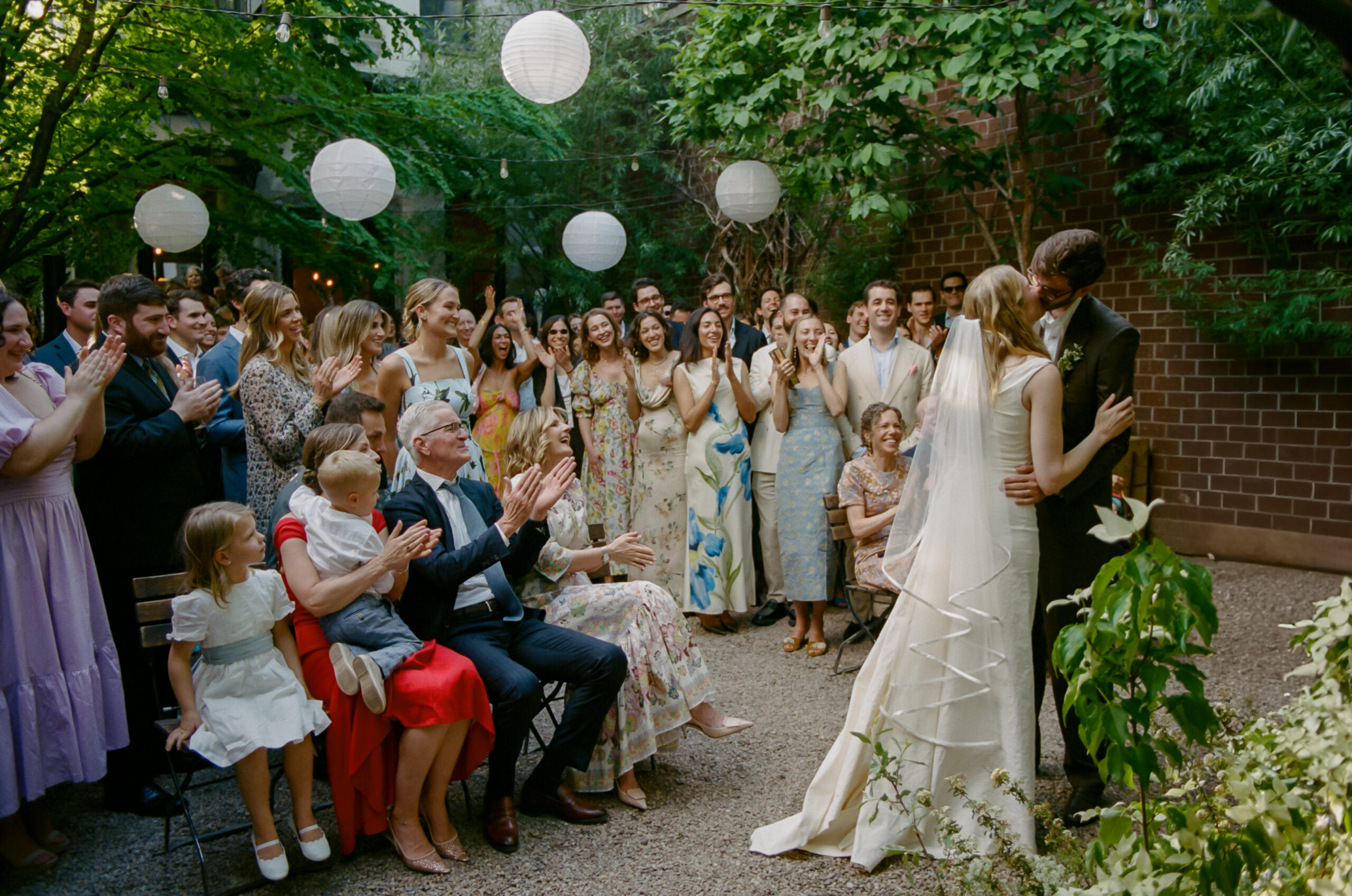 wedding at syndicated movie theater nyc shot on film by parkers pictures