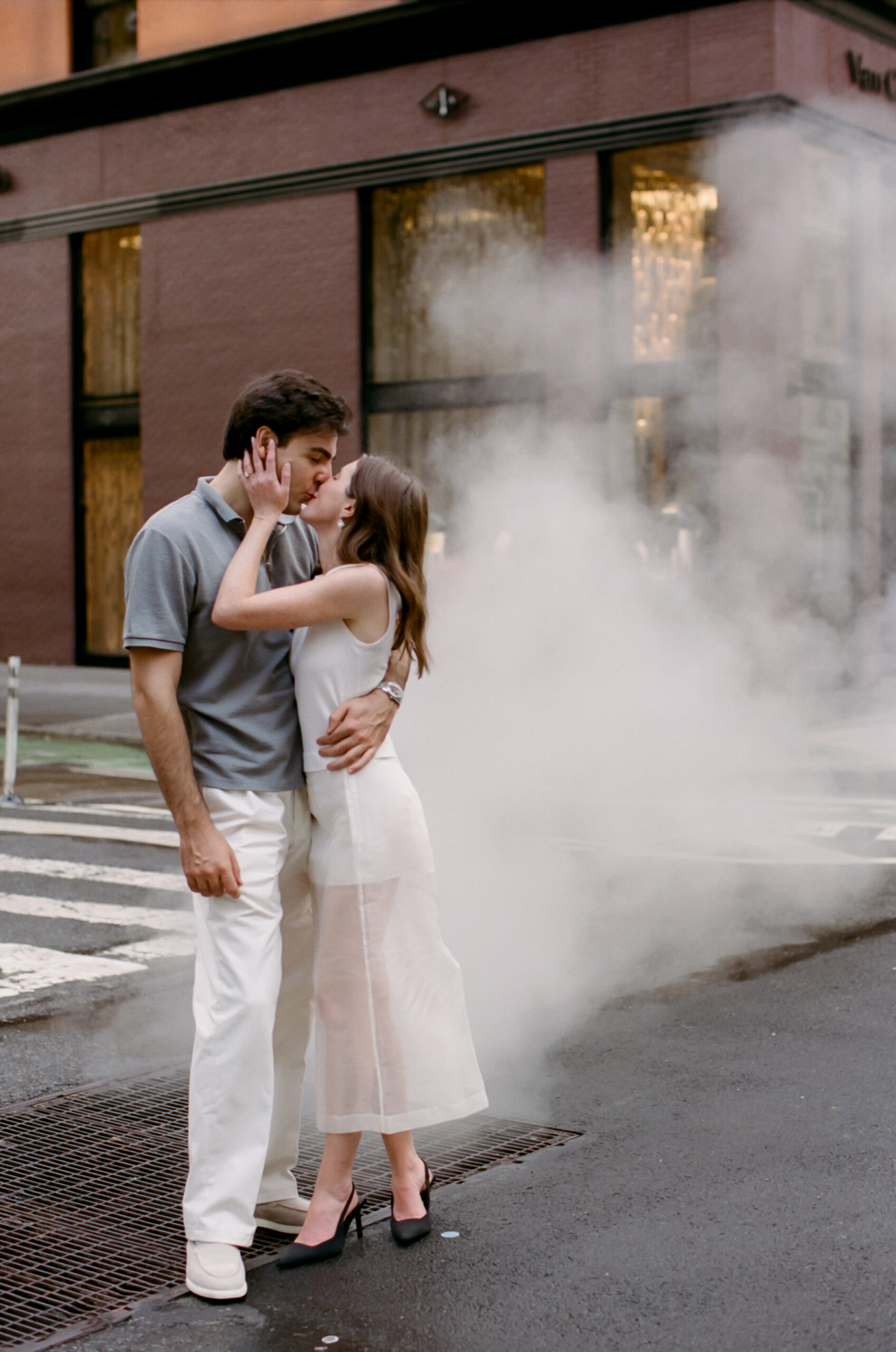 couple in the streets of soho shot on film by parkers pictures couple at hot dog stand nyc engagement photo outside metropolitan museum of art (MET) shot on film by parkers pictures autumn engagement shoot in central park nyc shot on medium format film by parkers pictures